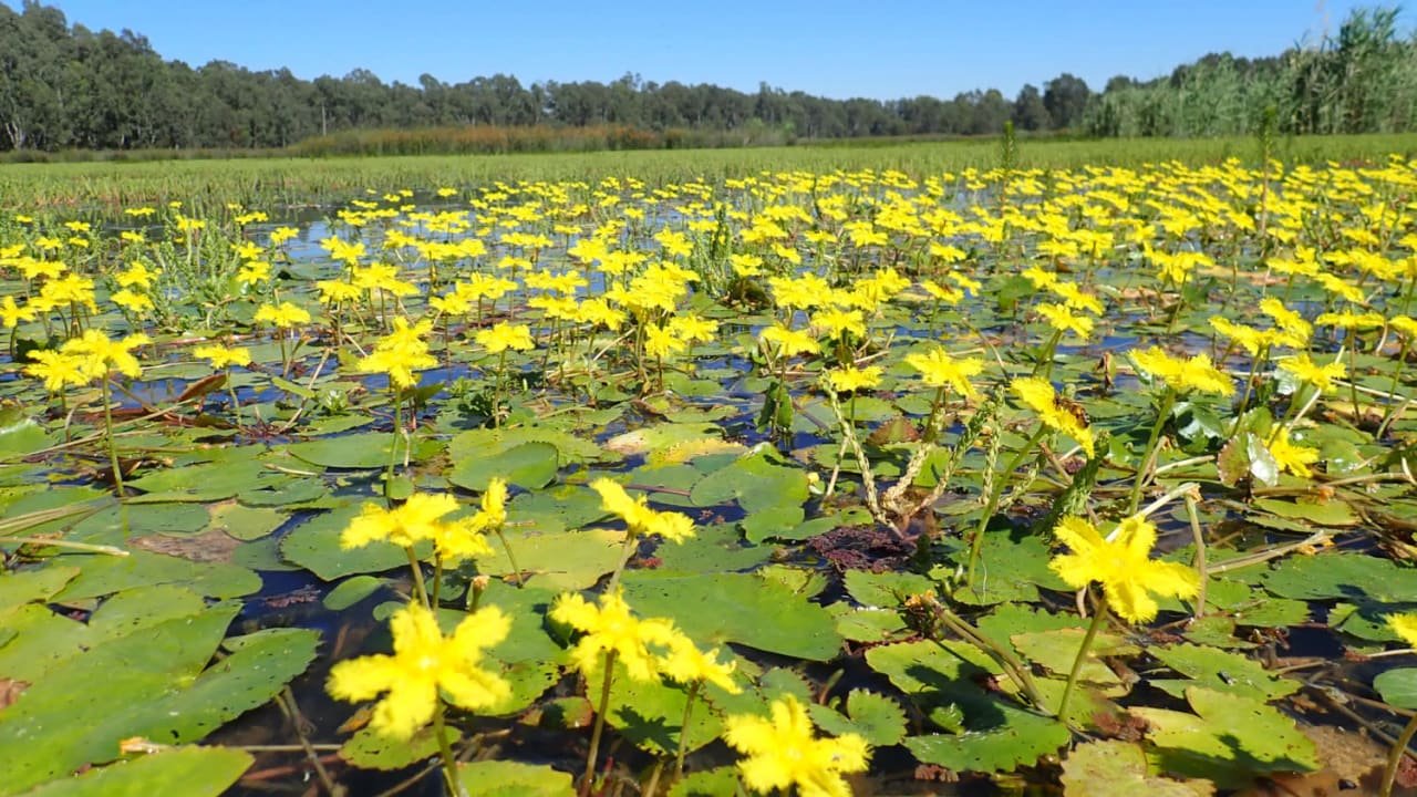 Seagrass, water-lilies, tea-tree, ferns and a variety of swamps compose the flora. The submerged, floating or emergent hydrophytes dominates the vegetation.